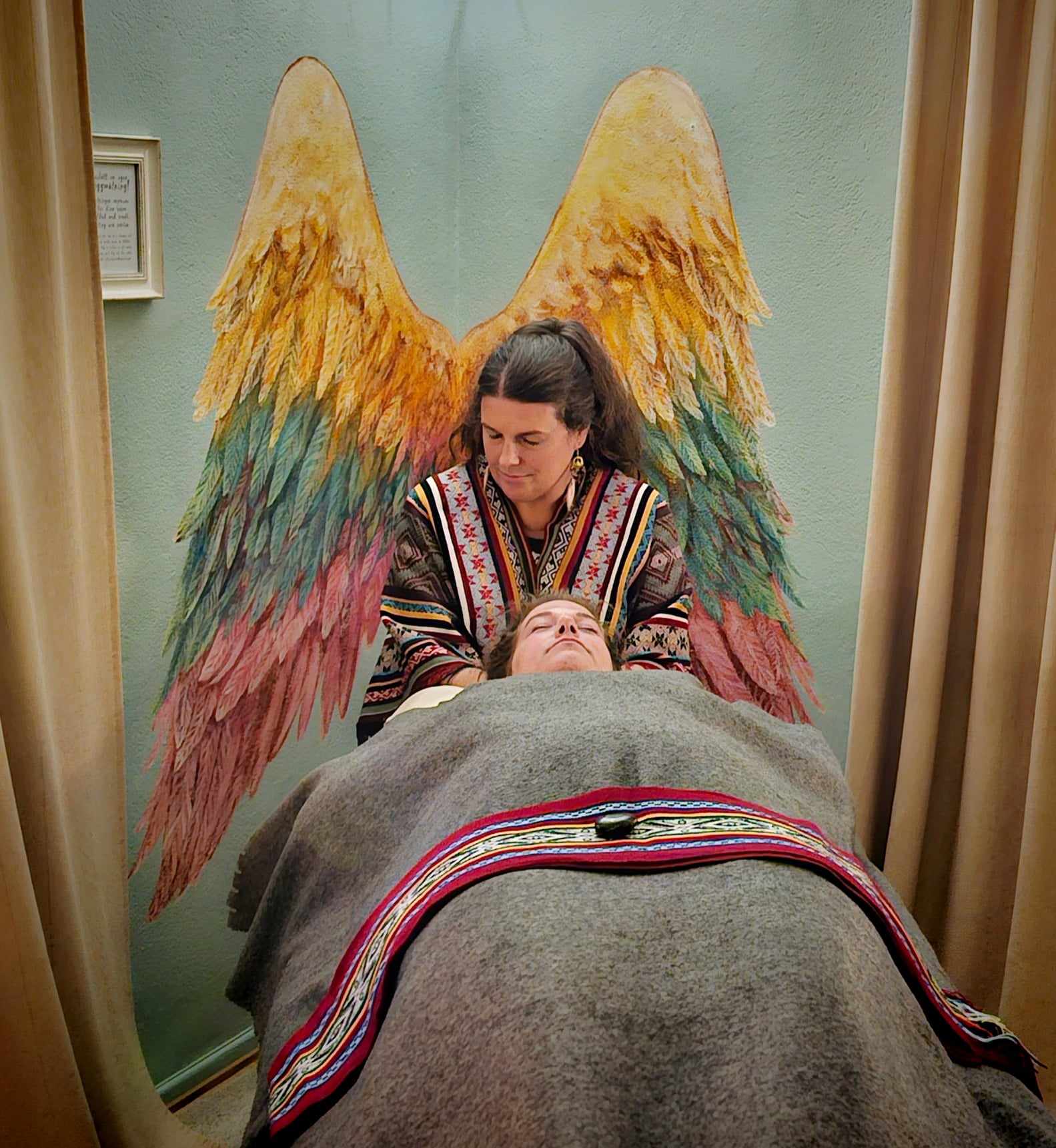 Därefter börjar healingprocessen – du ligger bekvämt på behandlingsbänken, inbäddad i en filt.